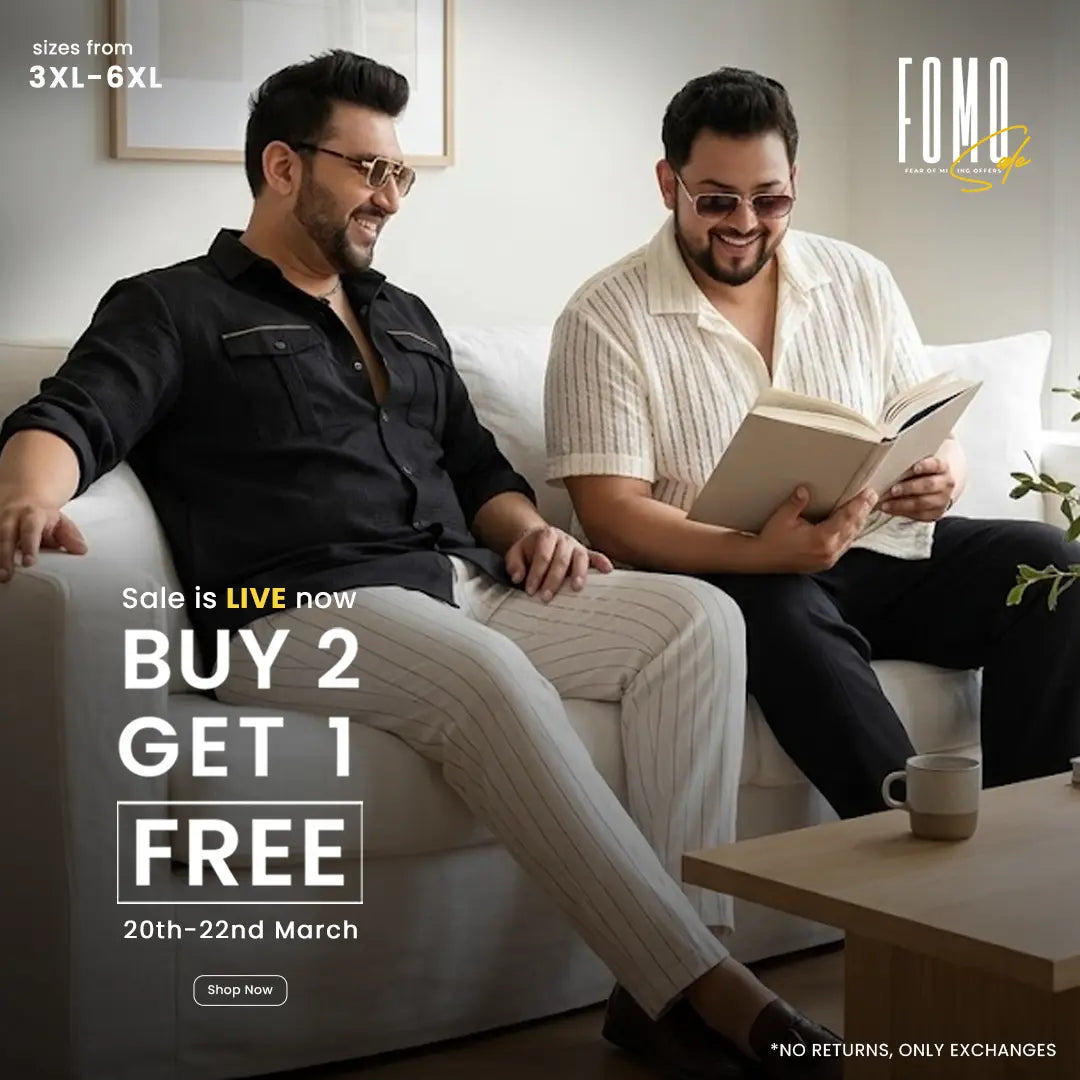 Our plus-size fashion outfits for men in this collection are designed for every casual and semi-formal event with a laser focus on comfort and durability. Every piece of clothing in this collection feels buttery against the skin and suits the Indian weather. With a whole lot of fabric choices (cotton, rayon, and blended fabrics), you can surely find the best plus-size clothing online in India for men.